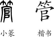 “管”是形声字。小篆从竹,官声。隶变后楷书写作“管”。