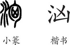 “汹”是形声字。小篆从水,匈声。隶变后楷书写作“汹”。