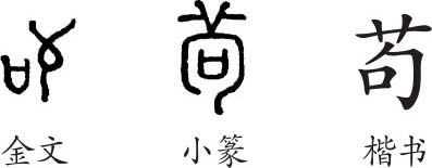《说文·艸部》:“苟,艸也。从艸,句声。”(苟,苟草。从艸,句声。)