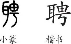 “聘”是形声字。小篆从耳(表示与听话、说话有关),甹声。隶变后楷书写作“聘”。