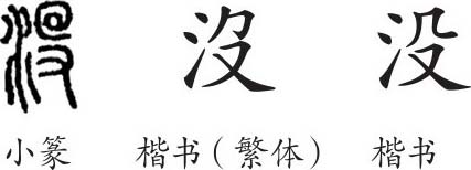 《没》字义,《没》字的字形演变,小篆隶书楷书写法《没》