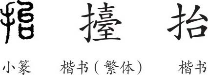 “抬”是后起字,为是形声字。楷书写作“抬”,从手,台声。现在用作“擡”的简化字。