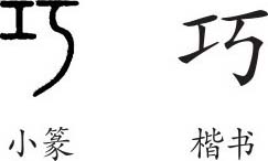“巧”是形声字。小篆从工(筑杵,表示建筑有技巧),丂声,隶变后楷书写作“巧”。