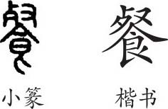 “餐”是形声字。小篆从食,声。隶变后楷书写作“餐”。