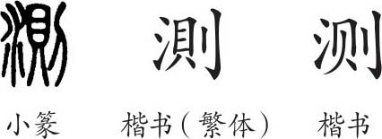 “测”是形声字。小篆从水,則声。隶变后楷书写作“測”。汉字简化后写作“测”。