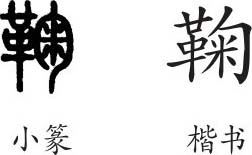 “鞠”是形声兼会意字。小篆从革,匊声,匊兼表转曲之意。隶变后楷书写作“鞠”。