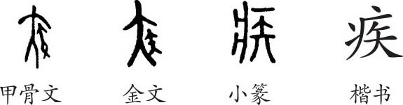 《疾》字义,《疾》字的字形演变,小篆隶书楷书写法《疾》