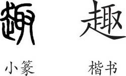 “趣”为形声字。小篆从走,取声。隶变后楷书写作“趣”。