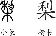 “梨”是形声字。小篆从木,利声。隶变后楷书写作“梨”。如今规范化,以“梨”为正体。