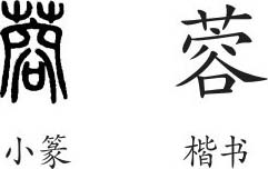 “蓉”是形声字。小篆从艸(艹),容声。隶变后楷书写作“蓉”。