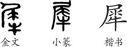 “犀”是形声字。金文从牛,尾声。小篆整齐化。隶变后楷书写作“犀”。