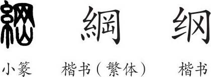 《纲》字义,《纲》字的字形演变,小篆隶书楷书写法《纲》