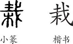 “栽”是形声字。小篆从木,()声。隶变后楷书写作“栽”。