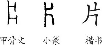 《说文·片部》:“片,判木也。从半木。凡片之属皆从片。”(片,已剖的木。由小篆“木”字的右半会意。大凡片的部属都从片。)