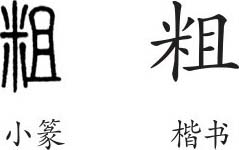 “粗”是形声字。小篆从米,且声。隶变后楷书写作“粗”。