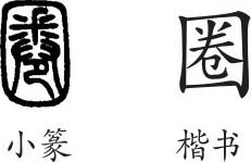 “圈”是会意兼形声字。小篆从囗(围绕),从卷,会从周遭围起来之意,卷兼表声。隶变后楷书写作“圈”。