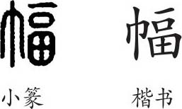 “幅”是形声字。小篆从巾,畐声。隶变后楷书写作“幅”。