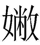 本字来源:《汉语大字典2》女部11画(网络综合整理)